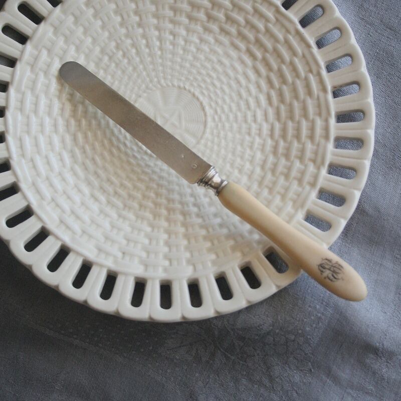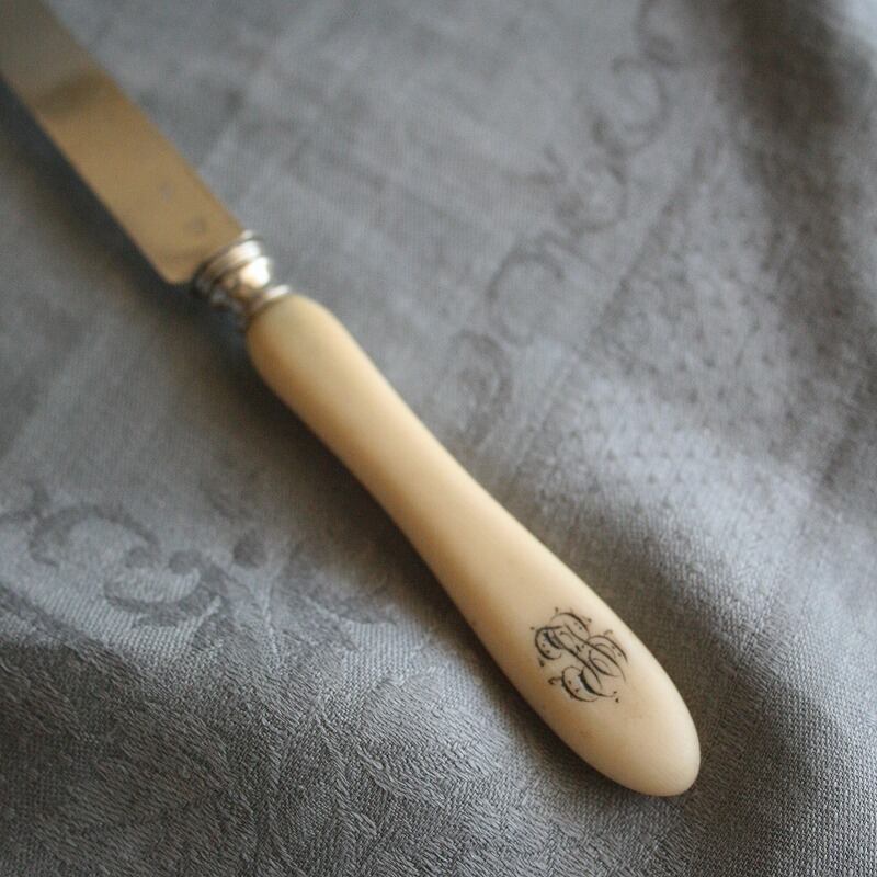 モノグラムの入ったアイボリーハンドル