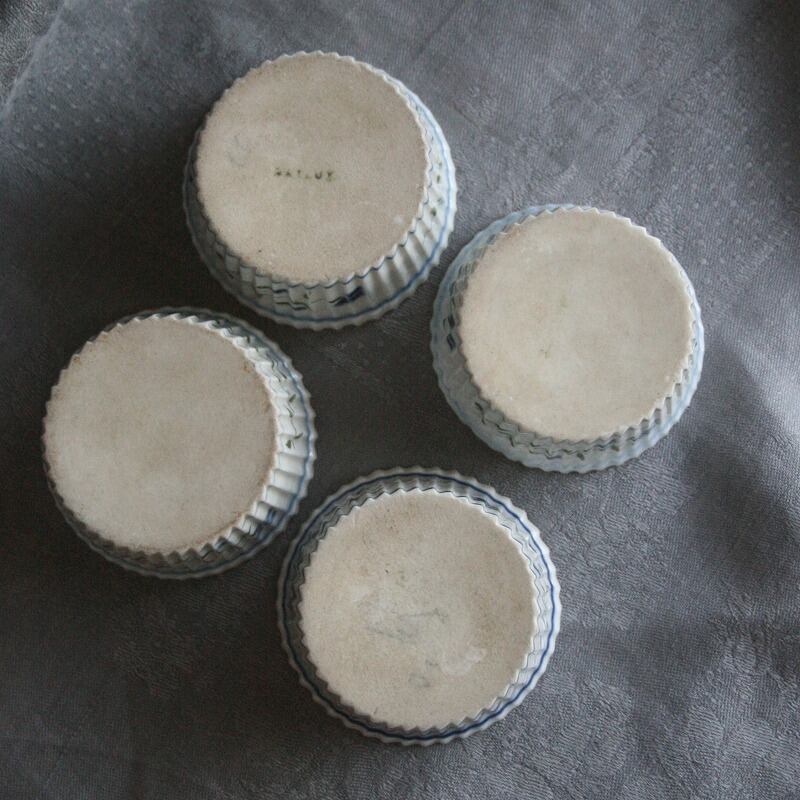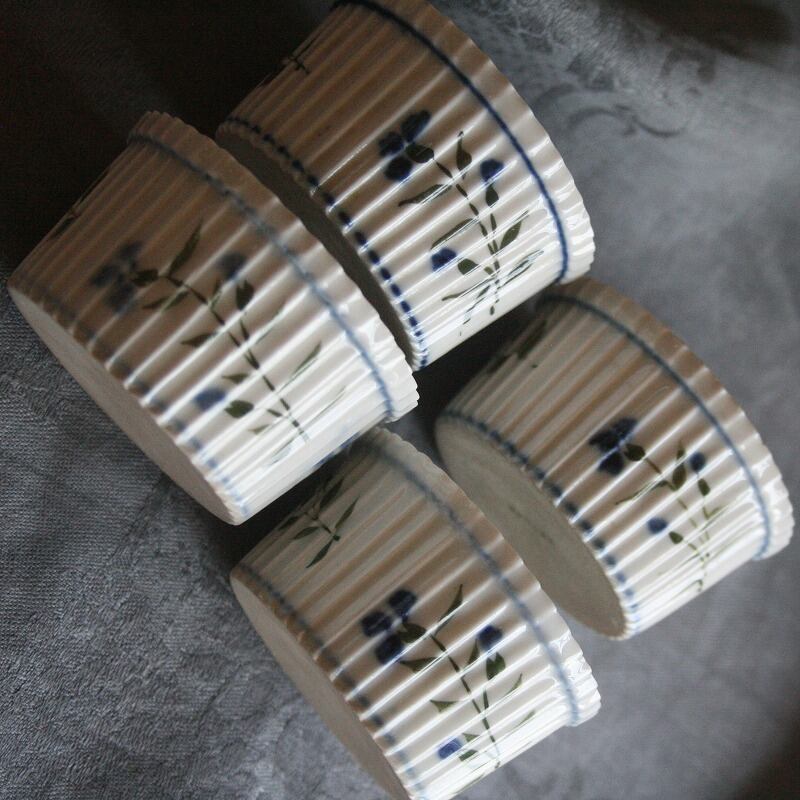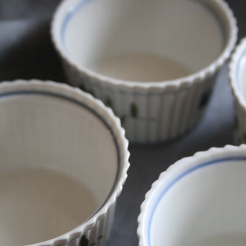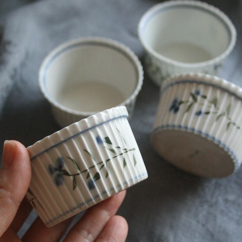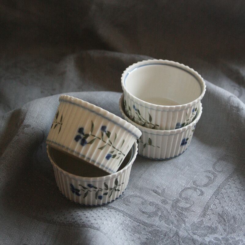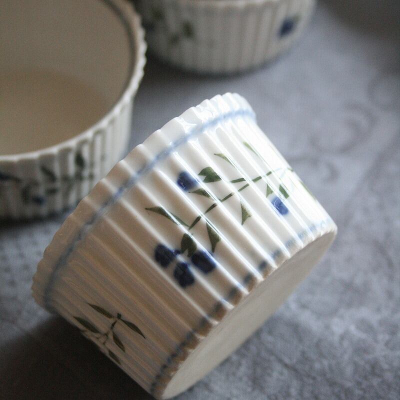 繊細な矢車菊が手描きされたスフレ用のラムカン
