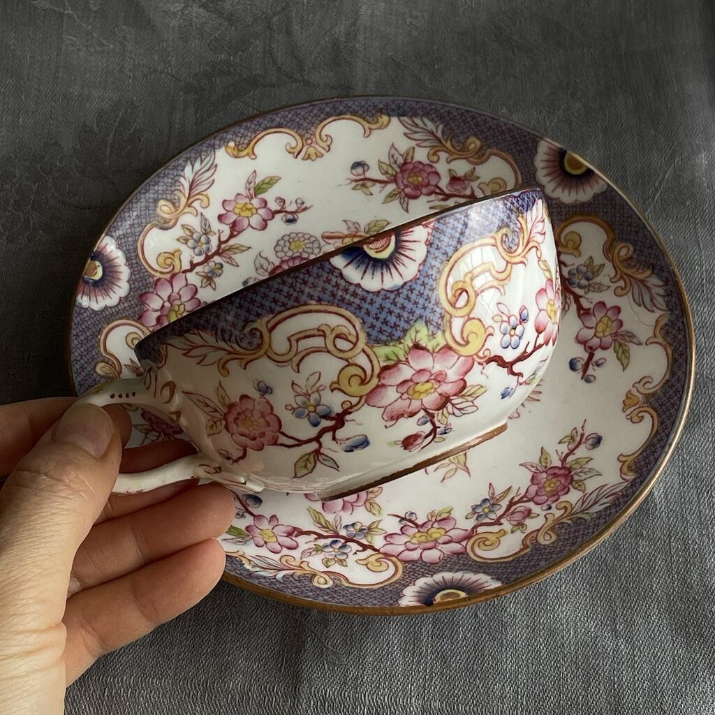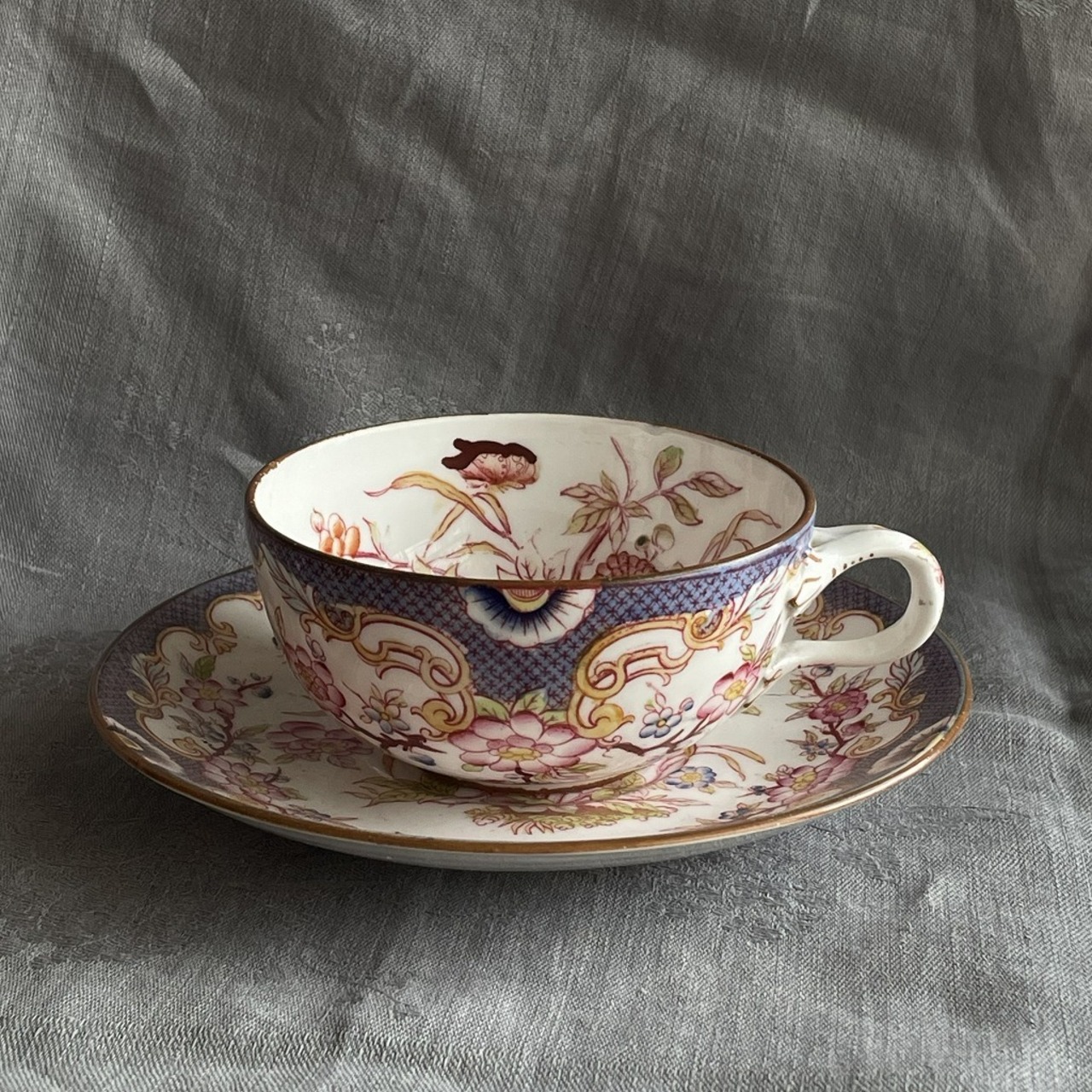 カップ内部の花の上部の手彩色が太目に感じます(個人的に)