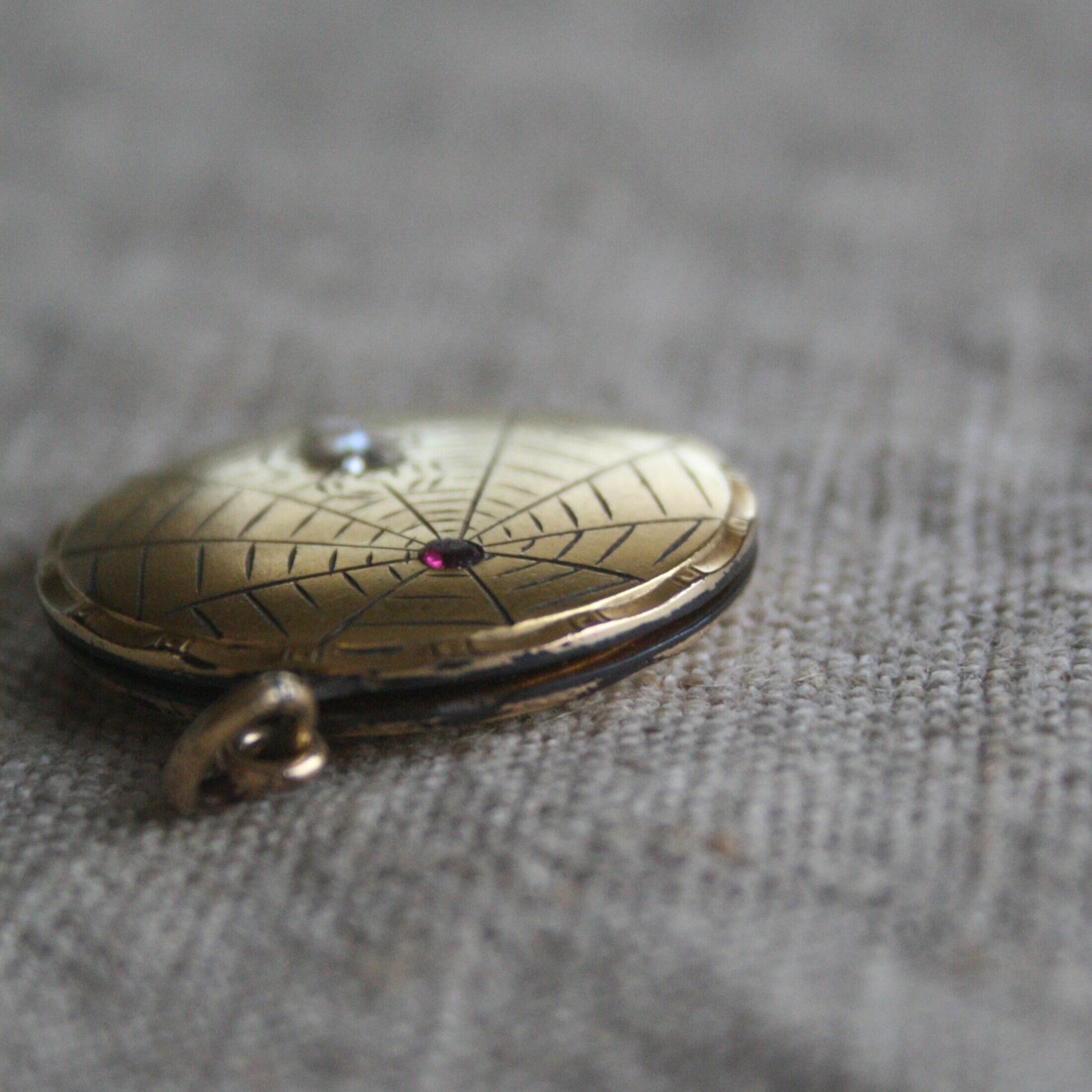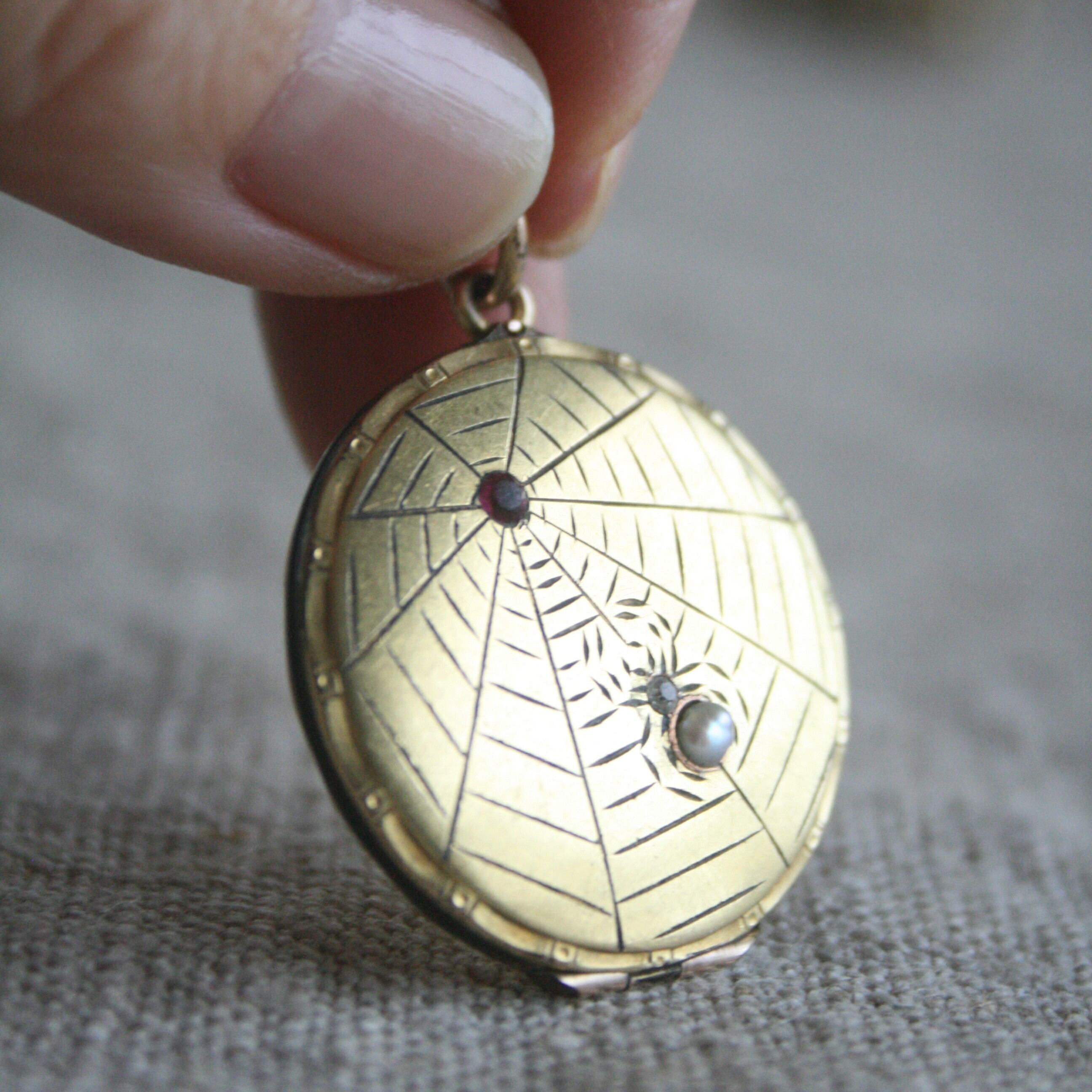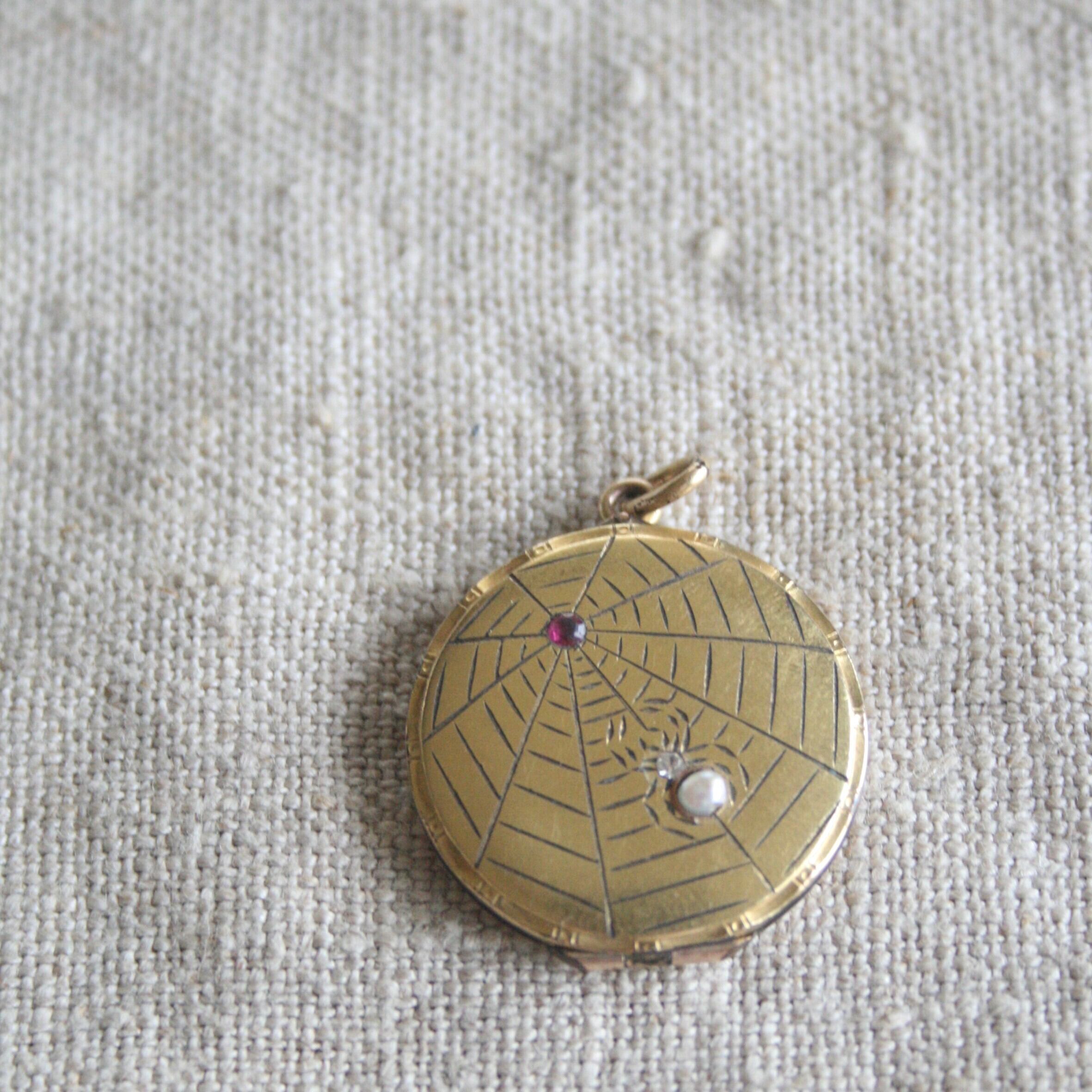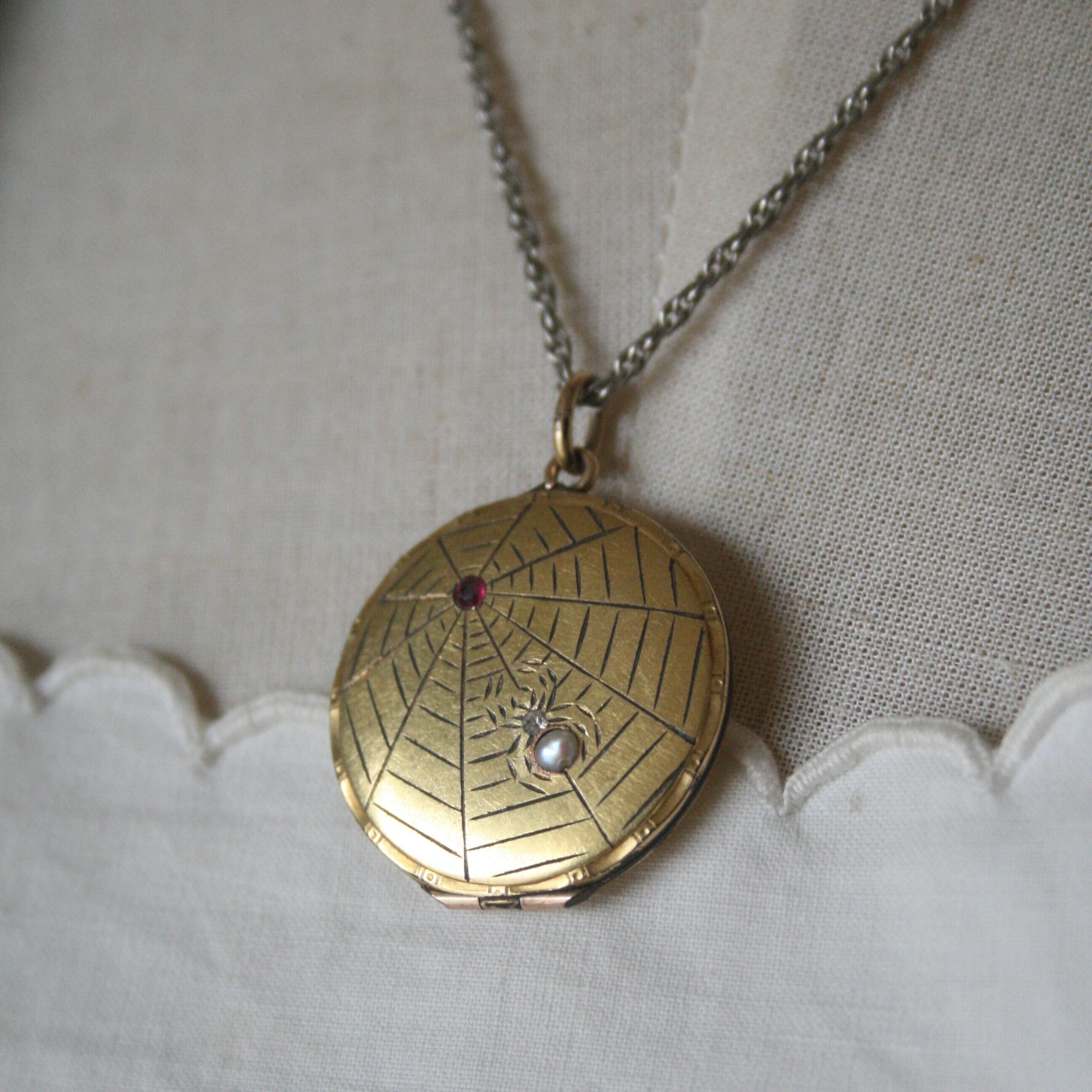 とても珍しい蜘蛛の巣がデザインされたロケットペンダント
